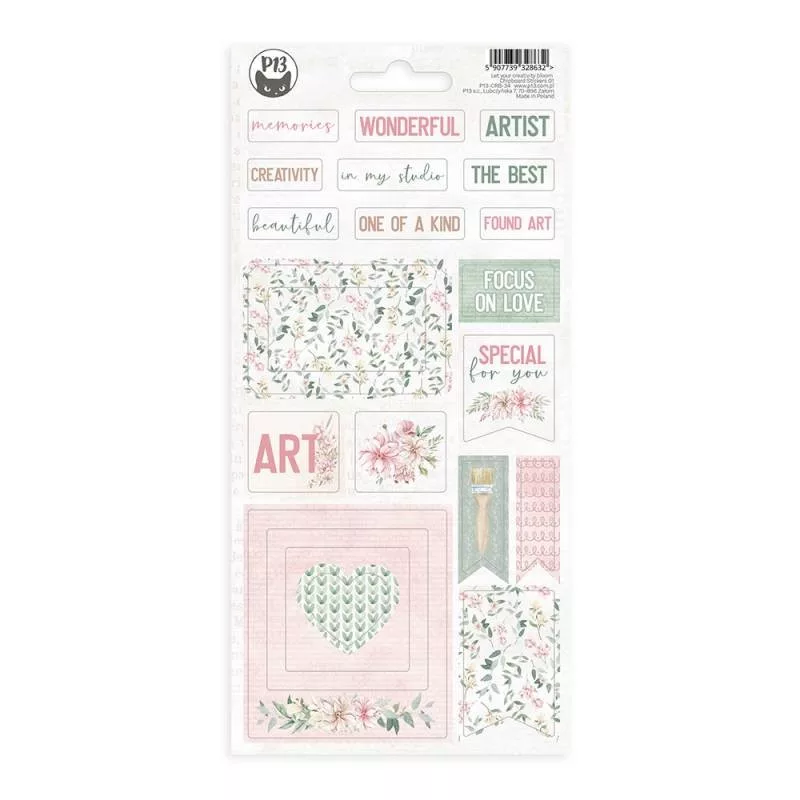 Chipboard matrica 10,5x22cm, Sticker sheet Chipboard / Piatek13 Let your creativity bloom (1 ív).