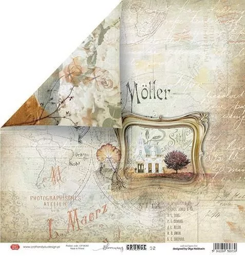 Scrapbook papír 12" (30 cm), Blooming Grunge Scrapbooking paper / Craft&You Paper (1 ív).