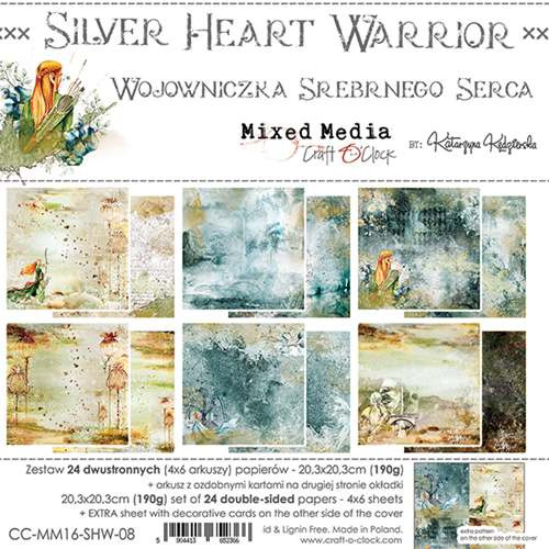 Papírkészlet 8" (20 cm), Silver Heart Warrior / Craft O'Clock Paper Collection Set (1 csomag)