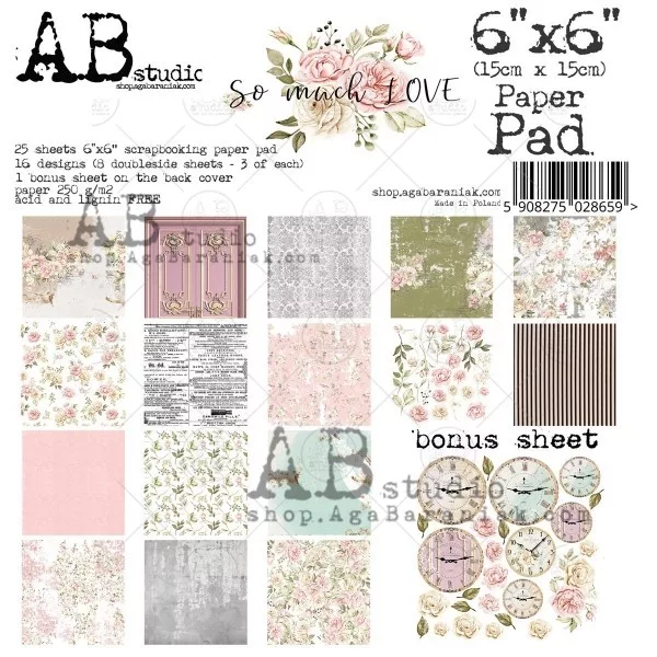 Papírkészlet 6" (15 cm), So much LOVE/ AB Studio scrapbooking paper (25 lap)